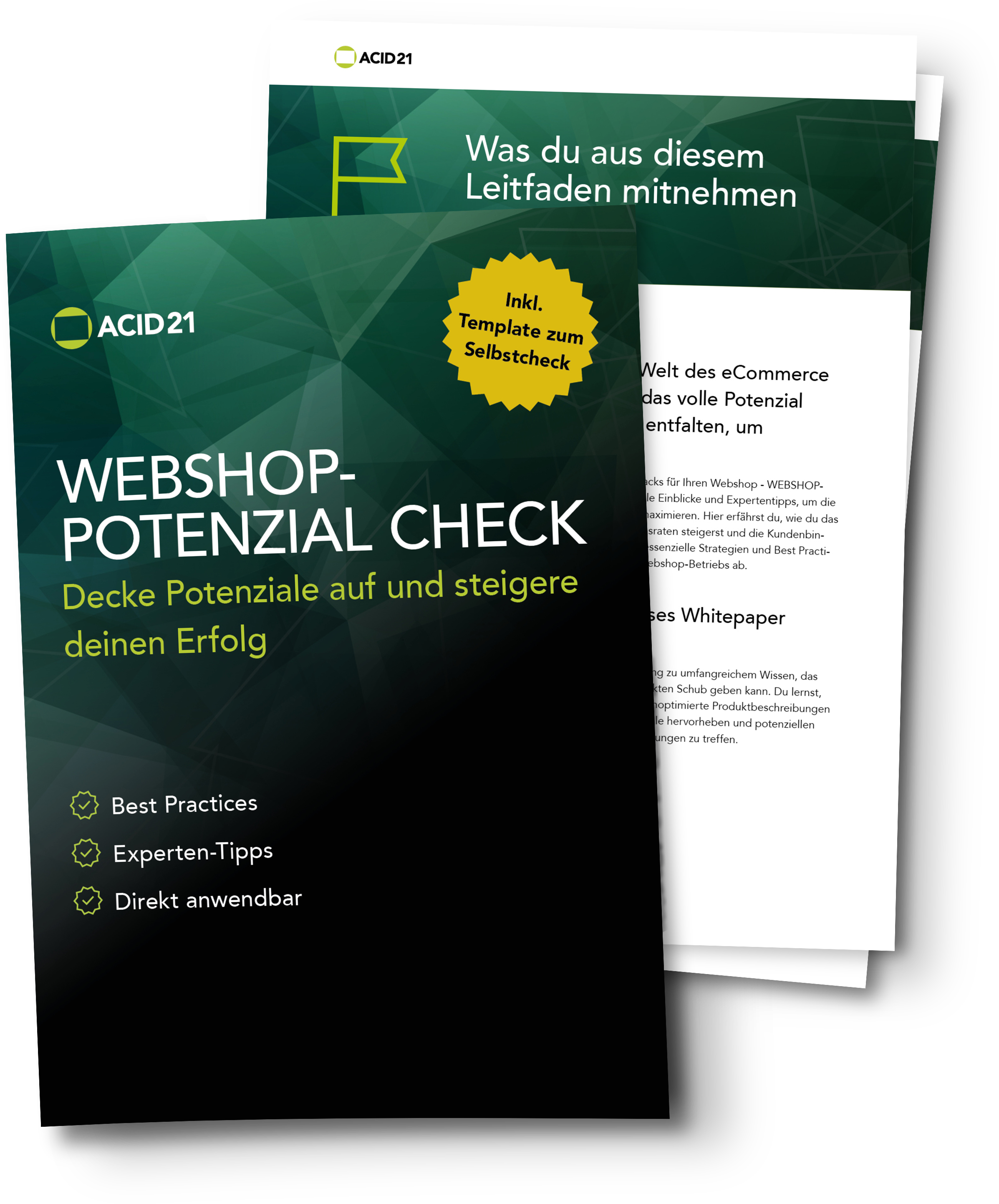 Ob Planung, Strategie, Design oder Entwicklung - als erfahrene Digitalagentur in Berlin entwickeln wir bei ACID21 seit über 20 Jahren maßgeschneiderte digitale Lösungen für Unternehmen jeder Größe. Von Webshops und Marktplätzen über Konfiguratoren bis hin zu transaktionalen E-Commerce-Plattformen inkl. App - für D2C-, B2C und B2B.