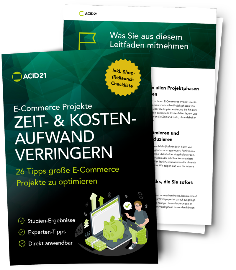 In diesem Leitfaden möchten wir unser Know-how aus über 25 Jahren Agentur-Erfahrung und mehr als hundert E-Commerce-Projekten bündeln und aufzeigen, wo in E-Commerce-Projekten die größten Zeit- und Kostenfallen lauern und wie man sie frühzeitig erkennt und umgeht. Damit dein nächstes E-Commerce-Projekt zum Erfolg wird.