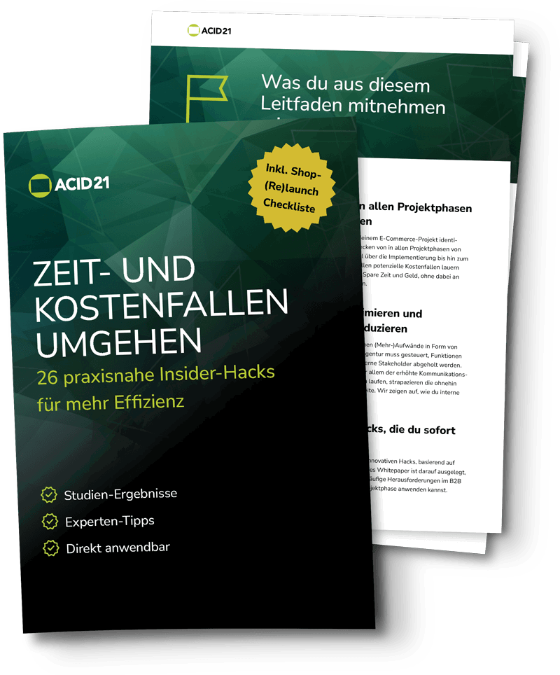 In diesem Leitfaden möchten wir unser Know-how aus über 25 Jahren Agentur-Erfahrung und mehr als hundert E-Commerce-Projekten bündeln und aufzeigen, wo in E-Commerce-Projekten die größten Zeit- und Kostenfallen lauern und wie man sie frühzeitig erkennt und umgeht. Damit dein nächstes E-Commerce-Projekt zum Erfolg wird.